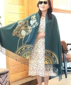 - Ưu điểm nổi bật: Khăn được trang trí bằng họa tiết truyền thống vẽ tay công phu, sang trọng, có độ bền theo thời gian và theo vòng đời của khăn.