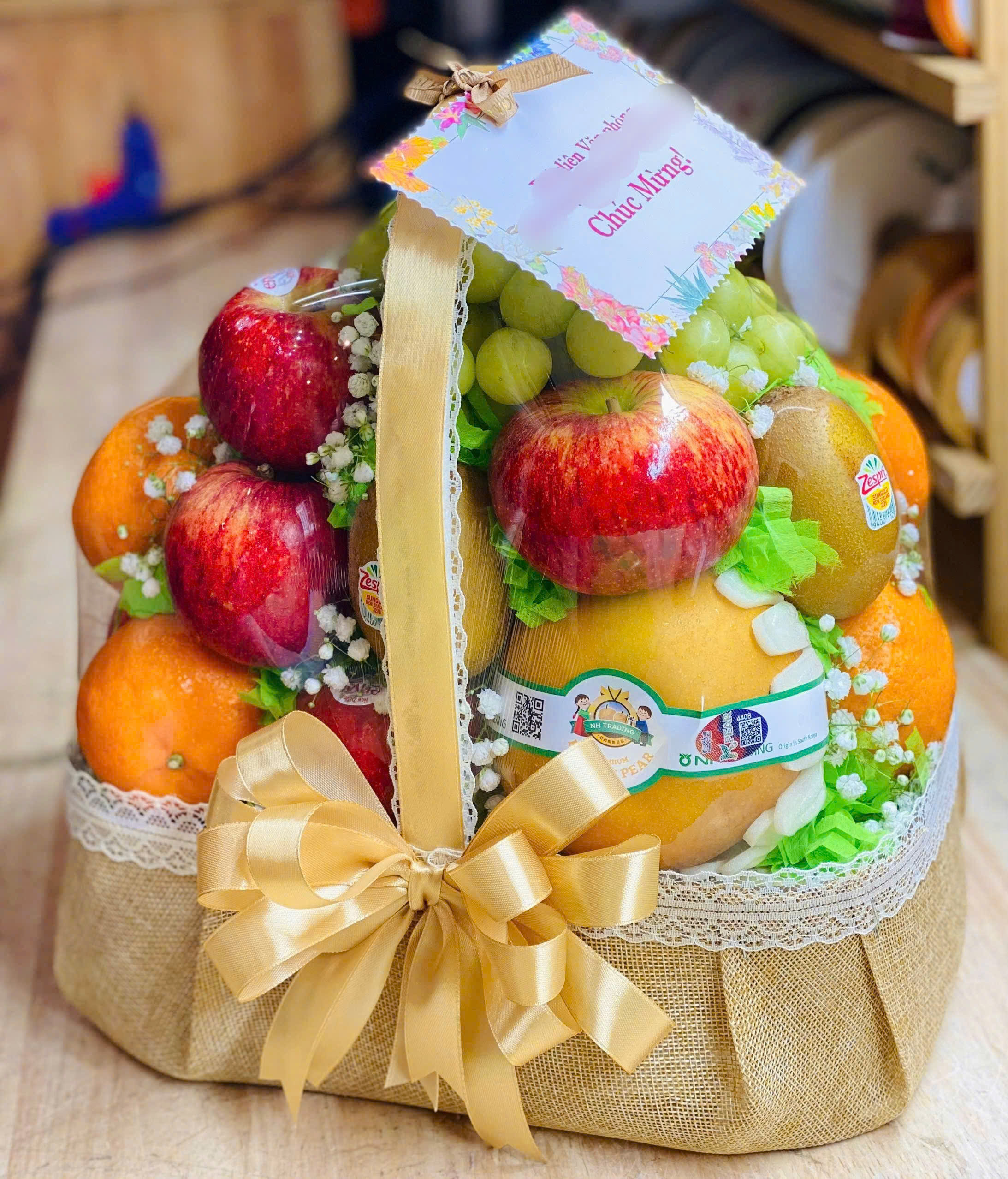 - Màu sắc: Quý khách vui lòng liên hệ DoMinhStores để được tư vấn màu hoa, giỏ quả phù hợp nhất.