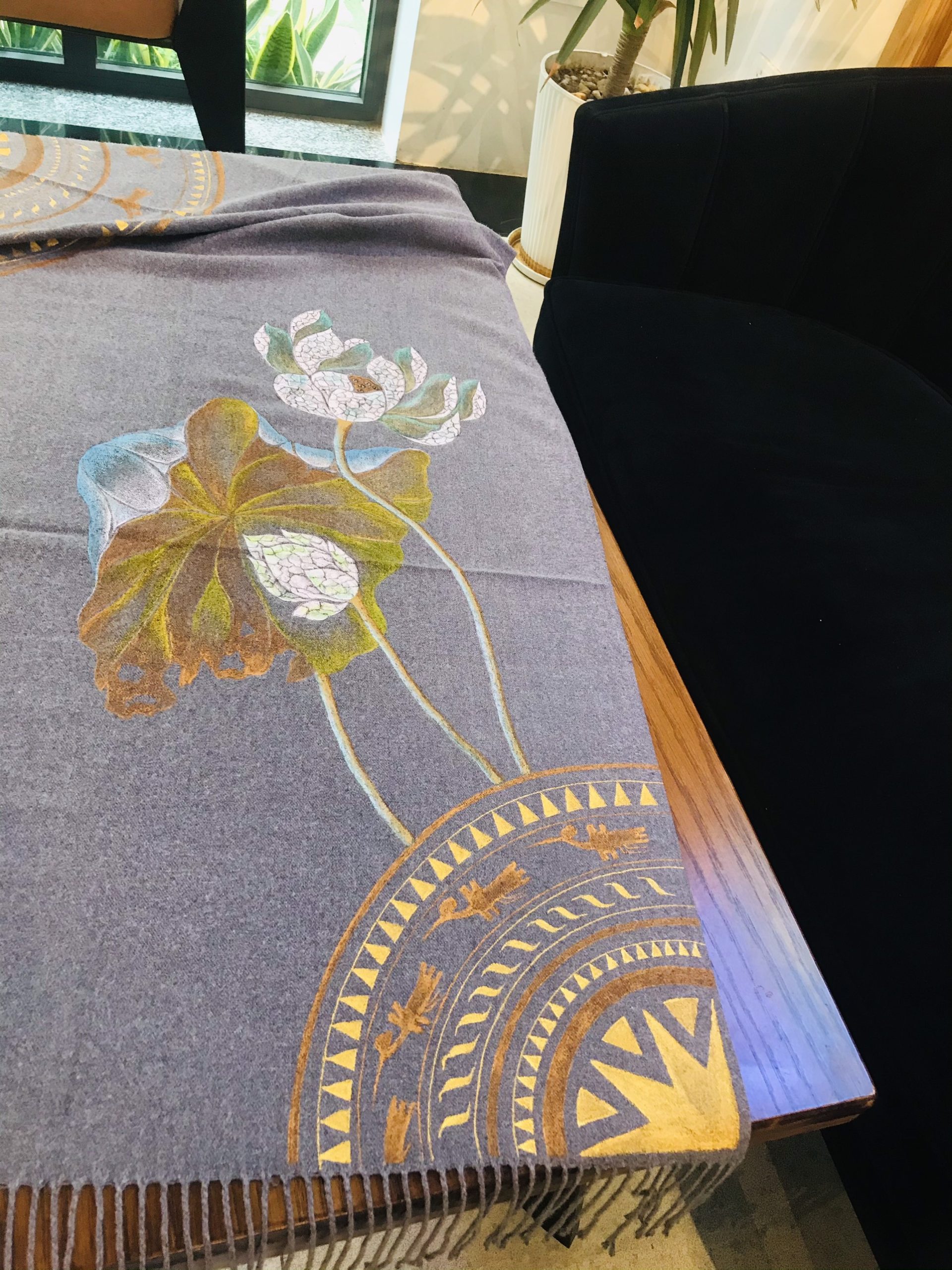 - Ưu điểm nổi bật: Khăn được trang trí bằng họa tiết truyền thống vẽ tay công phu, sang trọng, có độ bền theo thời gian và theo vòng đời của khăn.