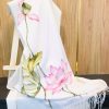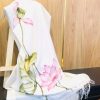 - Ưu điểm nổi bật: Khăn được trang trí bằng họa tiết truyền thống vẽ tay công phu, sang trọng, có độ bền theo thời gian và theo vòng đời của khăn.