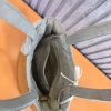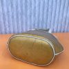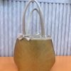 - Túi xách hình chữ nhật, mép miền và quai xách bằng chất liệu vải cùng màu lá, giúp sản phẩm bền và chắc chắn hơn, vừa đảm bảo tính thẩm mỹ để khách hàng an tâm sử dụng.