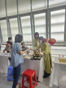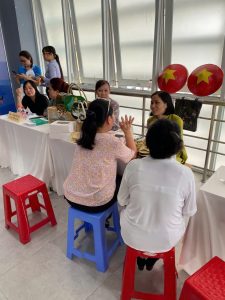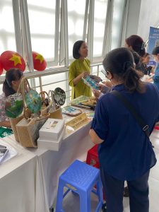 • Thứ hai là câu chuyện của người mẹ có nhiều trăn trở về việc tìm việc làm phù hợp cho một người con đặc biệt, cũng như tìm việc làm cho bản thân để vừa có thể làm việc vừa có nhiều thời gian cho con hơn. Sau khi ghé thăm gian hàng và trò chuyện với chúng mình, chị bày tỏ rằng công việc của bên mình khá phù hợp với khả năng của 2 mẹ con. Chúng mình đã kết nối thông tin cho chị về khóa nghề cho bé tại trung tâm, và việc gợi ý cho chị tham gia nhóm nghề tại địa phương để chúng mình có thể thực hiện hướng dẫn (tập huấn) được thuận lợi hơn.